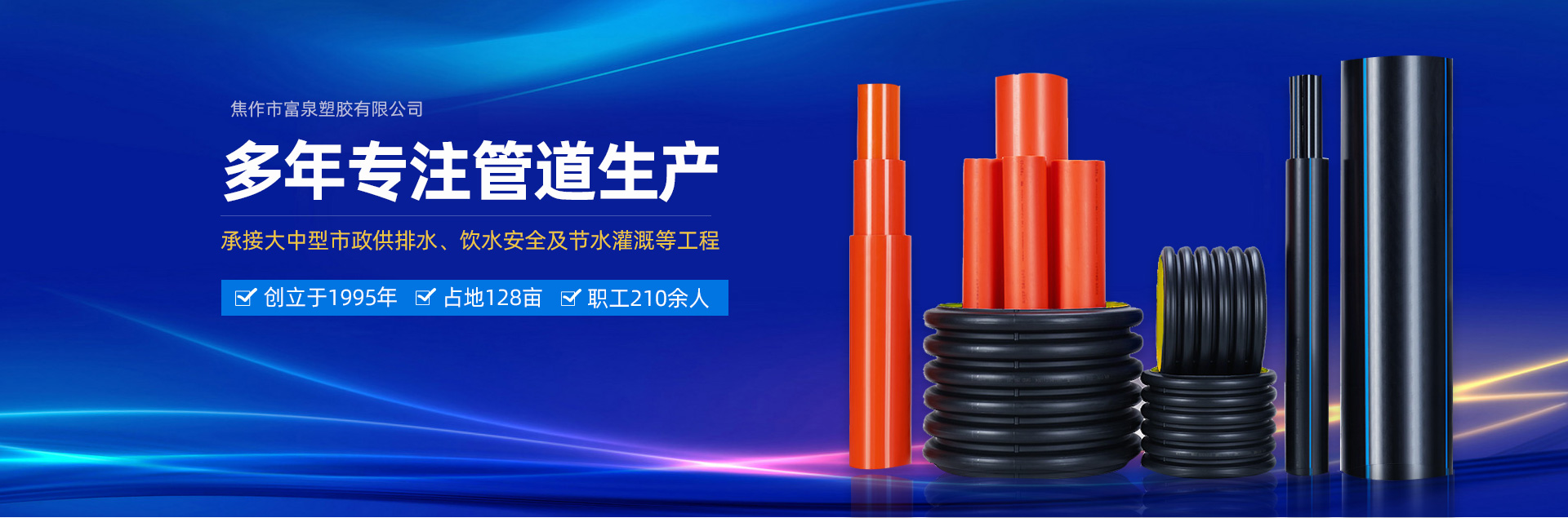 - 焦作市富泉塑膠有限公司,創(chuàng)立于1995年,是一家集研發(fā)、設計、生產、銷售為一體的大型管材企業。公司位于太極故里、黃河之濱一一河南焦作溫縣。公司占地128畝,現有職工210余人,其中具有中技術職稱的19人。生產、檢驗設備58臺(套),包括PVC實壁管生產線11套、PE實壁管生產線12套、HDPE雙壁波紋管生產線6套、PVC雙壁波紋管生產線5套,檢驗設備14臺(套)。主要產品有:Φ20mm-630mm、各種壓力規(guī)格的PVCU、PVC-M、PE給水管材,PVC-U節(jié)水灌溉管材,HDPE燃氣和礦用管材,DN200-800mm的HDPE、PVC雙壁波紋管及各種噴灌、滴灌工程材料。承接大中型市政供排水、飲水安全及節(jié)水灌溉等工程。 富泉塑膠公司重視產品的質量、安全、環(huán)保和節(jié)能,在同行業中率先完成了“新華節(jié)水產品認證”,全方面通過ISO9001:2008國際質量管理體系、IS014001:2004環(huán)境管理體系和OHSAS18001職業健康安全管理體系的一體化導入,并建立起規(guī)范的現代企業管理體系。公司以“質量”為先導,采用質量跟蹤、多環(huán)節(jié)把關的方法,組建具有行業水準的企業技術檢測中心,常年委托水利部節(jié)水灌溉設備檢測中心、河南省產品質量監(jiān)督檢驗院對產品跟蹤檢測,并由中國人民保險公司承保產品質量。公司連續(xù)多年被河南省水利廳確定為“安全飲水設備、節(jié)水灌溉設備”定點生產企業,并獲得“中國名優(yōu)產品”“質量、服務、信譽AAA企業”“河南省**產品”“河南省水利企業”“河南省守合同、重信用企業”等榮譽稱號?! 「蝗苣z公司堅持“用戶為上”的服務理念,長期以來,全方面關注客戶價值,不斷提升服務水平。服務隊伍常年為客戶的產品設計、施工、安裝提供合理的方案和全程細致、周到、**、快捷的技術服務。公司自成立以來,一直堅持以人為本的宗旨,塑造企業形象,并致力于新產品的開發(fā),憑借雄厚的技術開發(fā)能力,先進的工藝制造流程,嚴格的質量管理保證體系,優(yōu)良的售后服務網絡,已成為河南省大的飲水、灌溉及排水管材設備制造商。產品暢銷全國,而且還以公司雄厚的綜合實力在業界中占據著重要的地位。